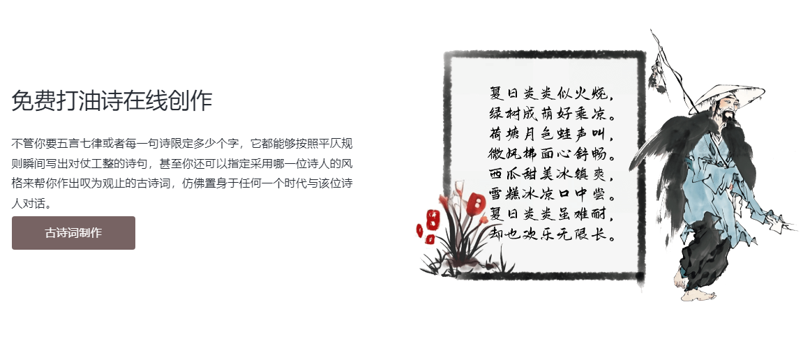 丹青AI網(wǎng)站是一個(gè)專業(yè)的AI創(chuàng)作平臺(tái),擁有強(qiáng)大的名字作詩(shī)在線生成器功能。與其他同類網(wǎng)站相比,丹青AI網(wǎng)站的生成器在生成質(zhì)量、速度、可玩性等方面都具有明顯優(yōu)勢(shì)。網(wǎng)站采用了業(yè)界領(lǐng)先的NLP模型和算法,能夠生成更加流暢、意境更加優(yōu)美的詩(shī)歌。同時(shí),丹青AI網(wǎng)站還提供了更多的個(gè)性化選項(xiàng),用戶可以根據(jù)自己的喜好,選擇詩(shī)歌的字?jǐn)?shù)、韻律、風(fēng)格等,使生成的作品更加符合自己的需求。
