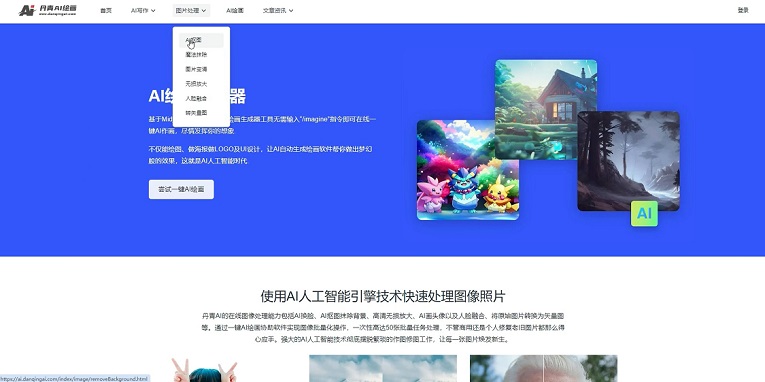 丹青AI是一個AI繪畫的網(wǎng)站,通過AI技術(shù)幫助用戶快速簡單地進行圖片的編輯和處理。無需下載安裝任何軟件,只需打開丹青AI,即可進行圖片的處理。它提供了多種實用的功能,包括圖片壓縮、無損方法、轉(zhuǎn)矢量圖、人臉融合等,方便用戶對圖片進行美化或修改。界面簡潔明了,操作簡單易懂,非常適合不熟悉復雜圖像處理軟件的用戶使用,也有符合專業(yè)MJ繪畫的操作界面,也可以做成與midjourney媲美的圖片。