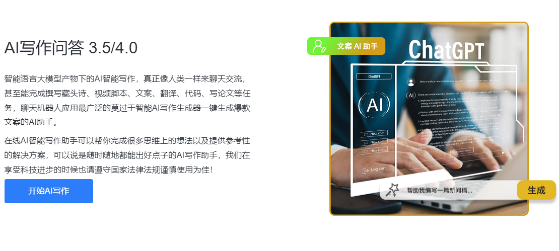 丹青AI網(wǎng)站是一個功能強大的在線寫作平臺,集成了業(yè)界領先的人工智能技術。它能夠根據(jù)用戶輸入的關鍵詞、主題等信息,自動生成優(yōu)質(zhì)的文章內(nèi)容,并提供多樣化的寫作模板和素材庫,滿足不同用戶的寫作需求。無論您是新手寫作者還是資深文字工作者,丹青AI網(wǎng)站都能成為您得心應手的智能寫作助手,為您的創(chuàng)作之路保駕護航!