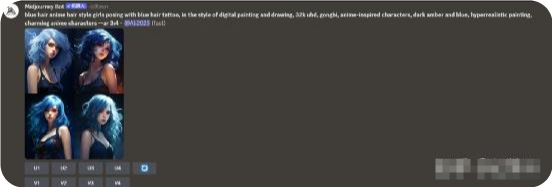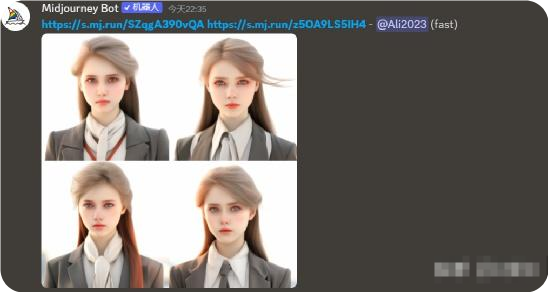 在MJbot回答的最下方有對(duì)應(yīng)Propmt的“1”、“2”、“3”、“4”,點(diǎn)擊選中一個(gè),即可發(fā)送propmt給AI。