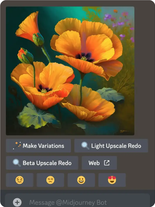 可以點(diǎn)擊表情對Midjourney生成的圖片進(jìn)行評價(jià)。