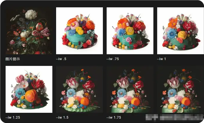 提示示例:/imagine promptflowers.jpg birthday cake --iw .5