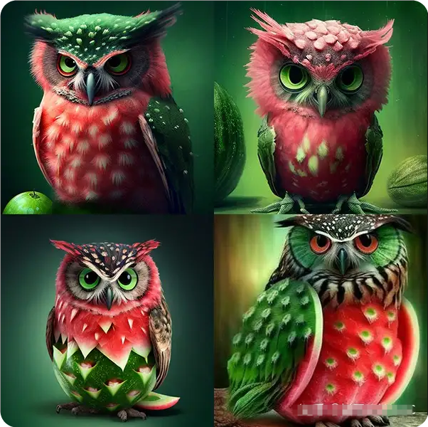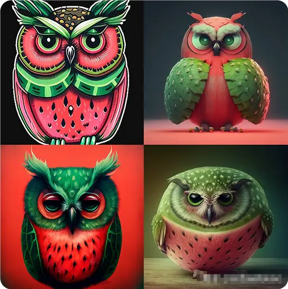 提示示例:imagine/ prompt watermelon owl hybrid --c 100