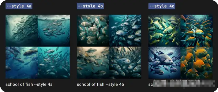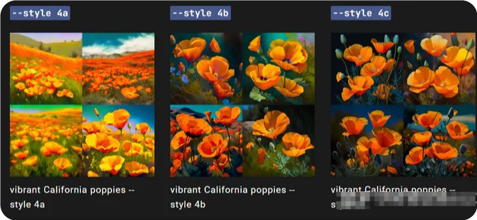 --style <4a, 4b, or 4c>在 Midjourney模型版本4的版本之間