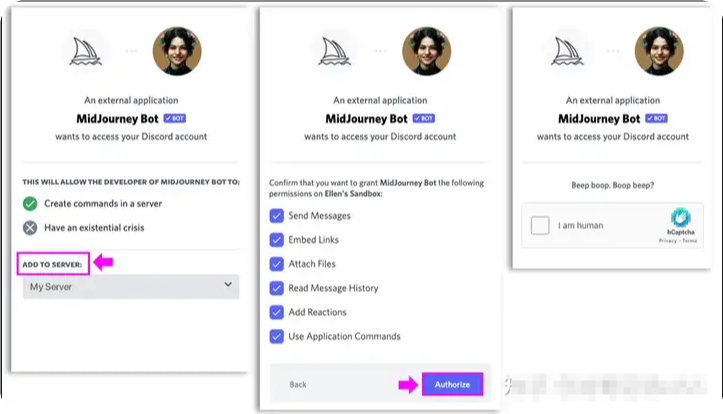 選擇要將其添加到的服務(wù)器,然后按照 discord 中的說明進(jìn)行操作。
