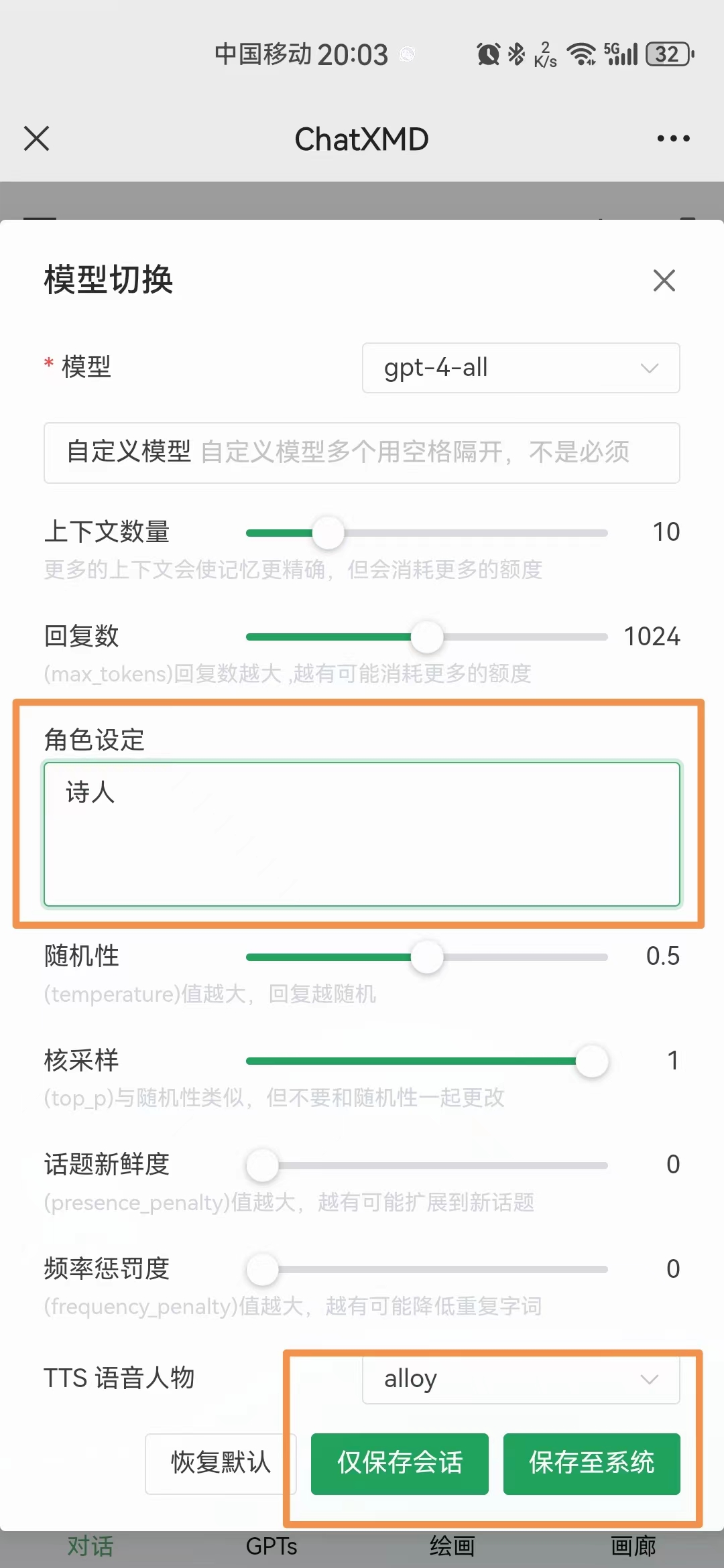 第四步:在“角色設(shè)定”位置填寫比如“詩(shī)人”,如果你是需要寫作其它東西,可以根據(jù)具體創(chuàng)作者角色進(jìn)行設(shè)定;然后點(diǎn)擊右下角的保存按鈕;