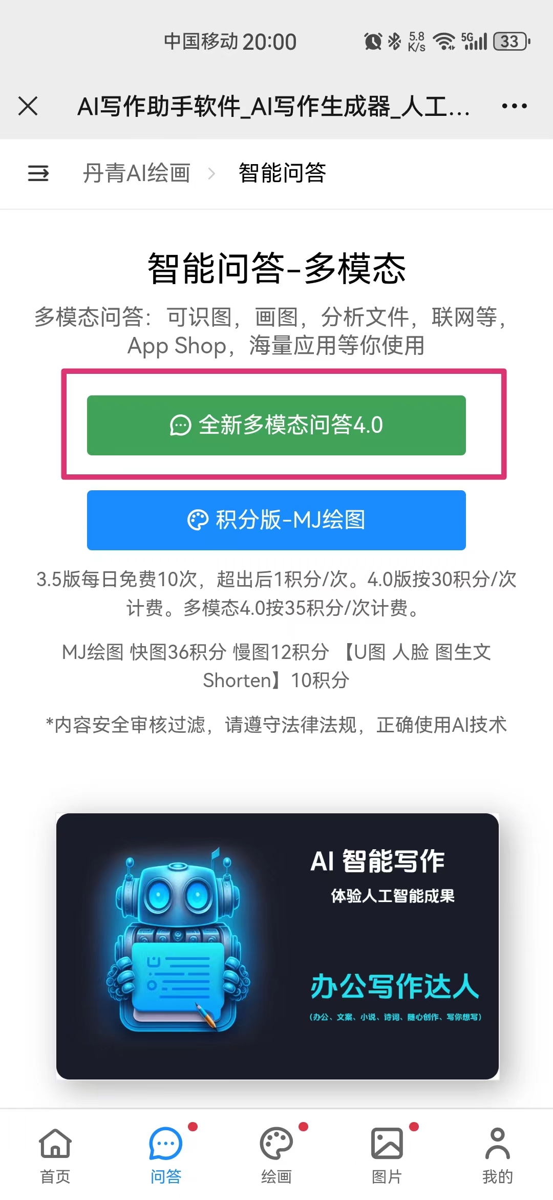 第一步:在功能界面上選擇左下角的“問答4.0”進(jìn)入