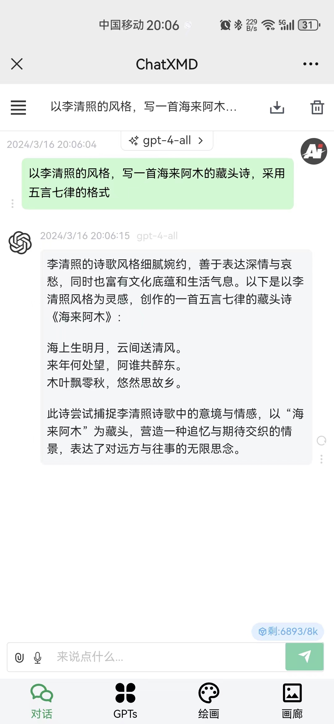 姓名藏頭詩(shī)免費(fèi)制作教程如上所示,如果你是要?jiǎng)?chuàng)作詩(shī)歌或者現(xiàn)代詩(shī)之類的文學(xué)創(chuàng)作,那么可以將這個(gè)AI對(duì)話模塊切換為詩(shī)歌生成器或者其它任意角色,都能像名字作詩(shī)在線生成器一樣實(shí)現(xiàn)你的需求。
