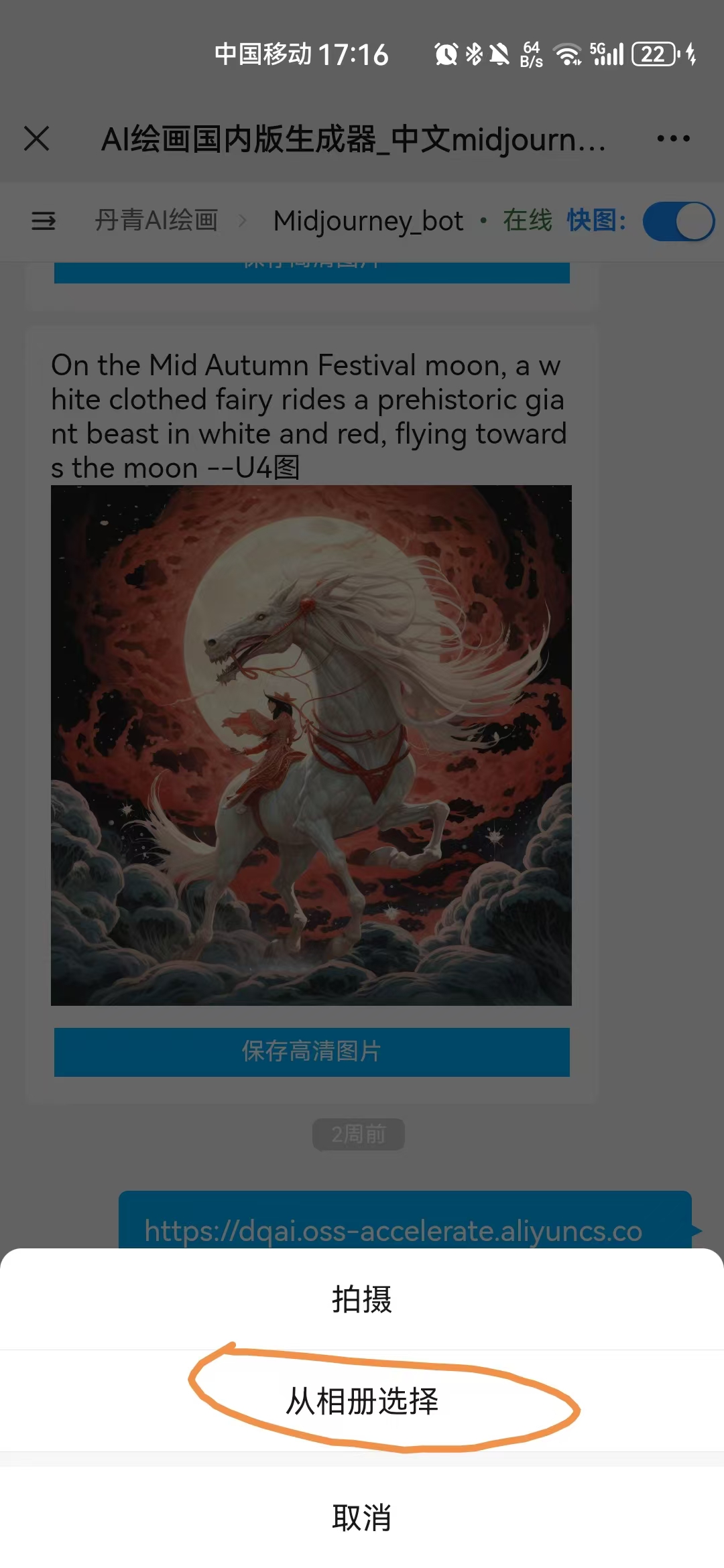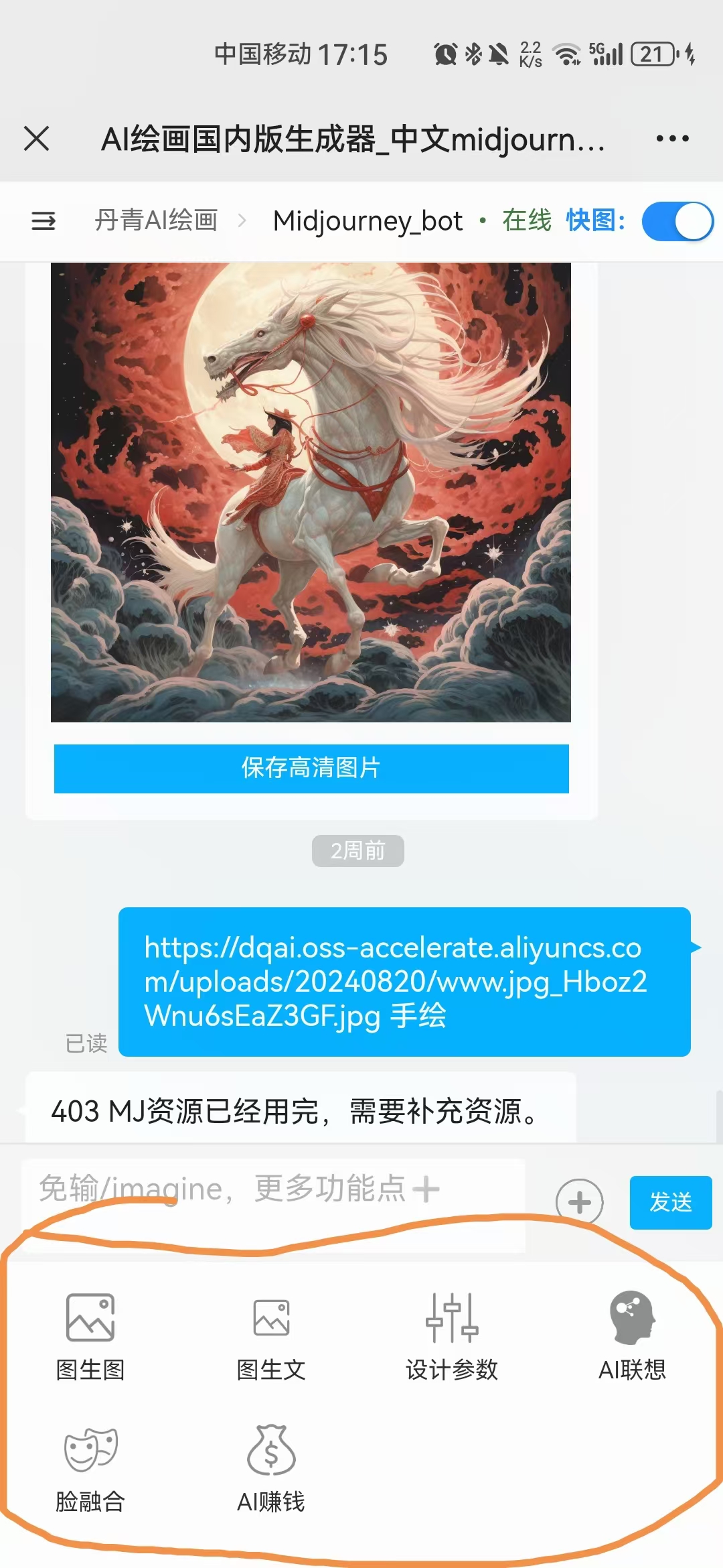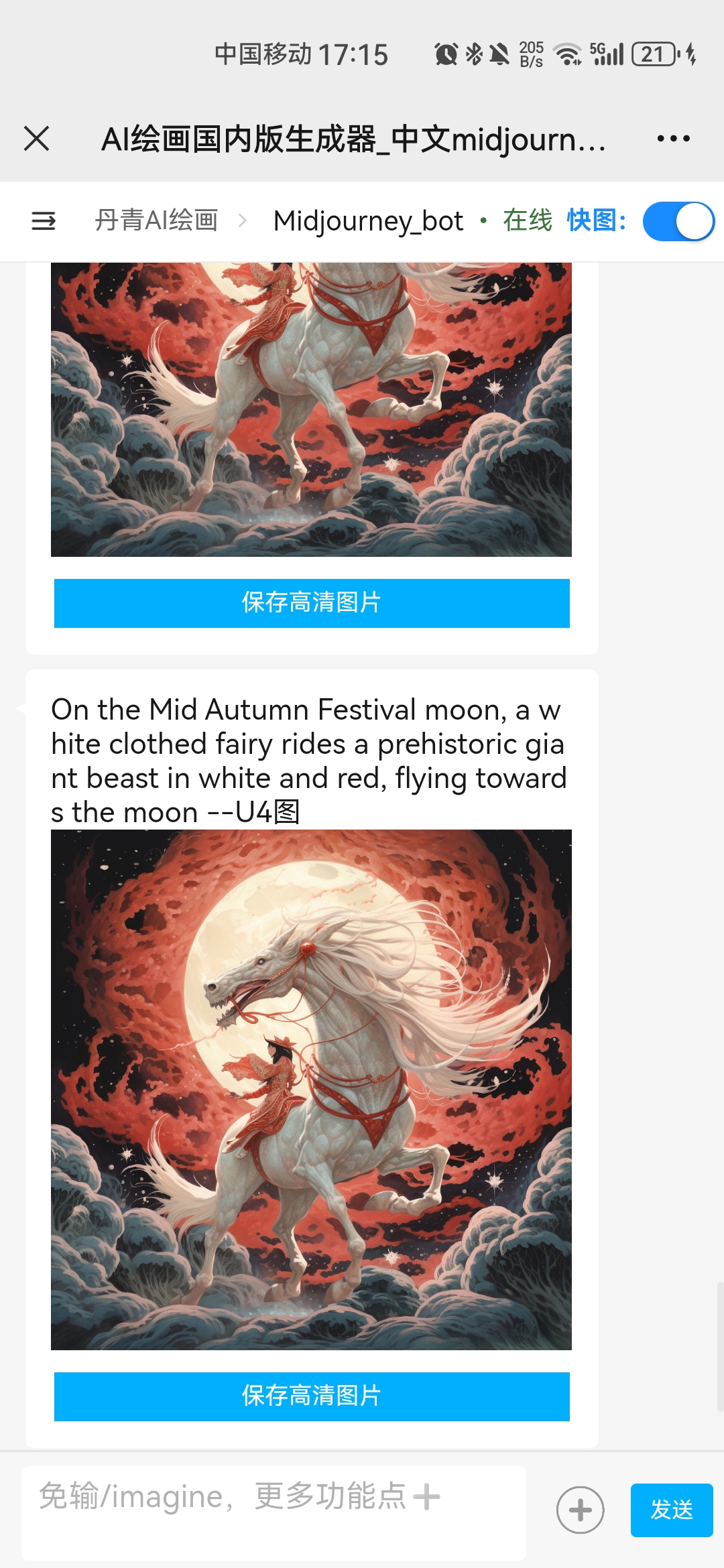 我們只需要在圖片鏈接后面加入要變幻的提示詞即可提交生成圖片了。這個和midjourney官方是一模一樣的功能和操作,我們直接支持純中文輸入更加方便。