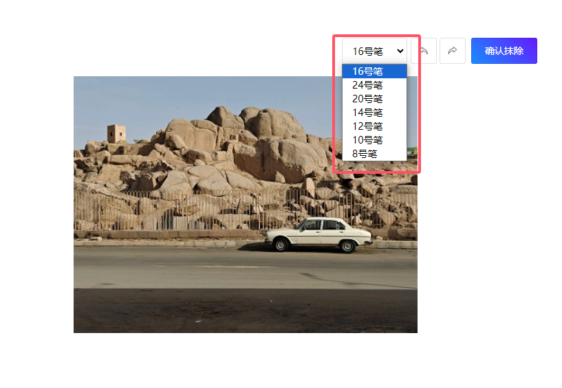 圖片上傳到ai消除軟件后首先我們注意一下這個畫筆大小的選項,根據(jù)抹除的面積大小選擇合適的畫筆尺寸。