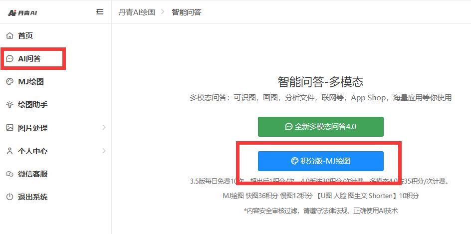 同時(shí)我們還推出了界面化的操作AI畫(huà)美女寫(xiě)真功能,只需要點(diǎn)擊功能點(diǎn)導(dǎo)航的“AI問(wèn)答”-“積分版-MJ繪圖”