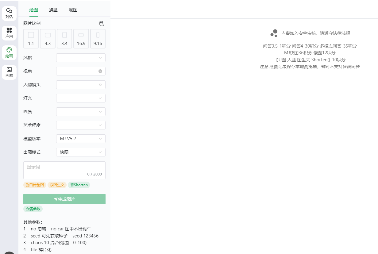 具體使用方法則需要登錄并打開(kāi)進(jìn)入丹青AI繪畫網(wǎng)站上的MJ繪畫功能界面,如下圖所示是PC端功能界面,在風(fēng)格那里選擇畫作類型即可